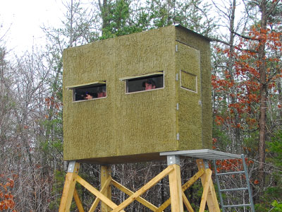 The Deluxe is for the hunter who wants the very best. For either ground blind or elevated use, it weighs approximately 900 pounds and is available with a half door or full door. The blind has windows on all four sides for 360 degree field of view, and slide up windows for quiet and quick access to shooting lanes. The larger size makes it extremely comfortable for two people to sit and enjoy a hunt together or one person to have room to move around. Interior dimensions are 47” wide by 95” deep by 80” high.